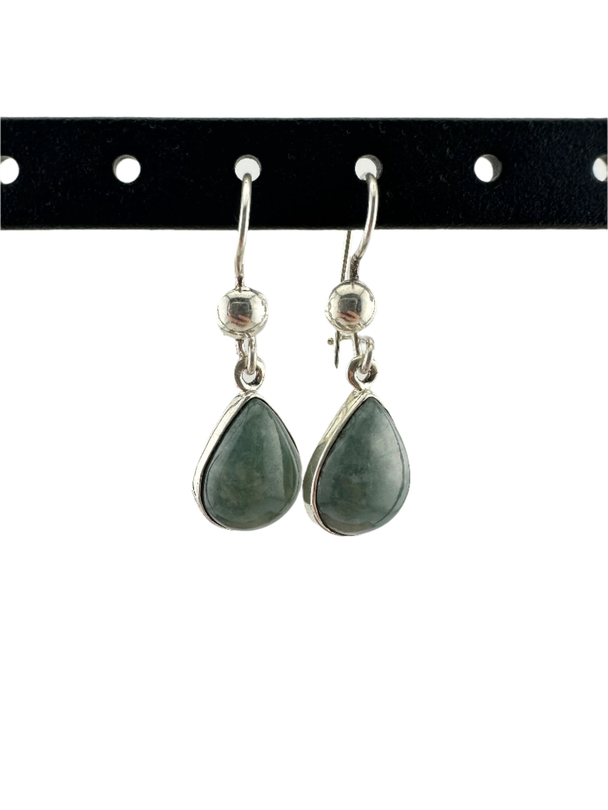 Add a touch of whimsy to your wardrobe with these Grayed green Jade tear earrings. These playful earrings are the perfect addition to any outfit, adding a fun and unique element. With their grayed green color, they're sure to make a statement