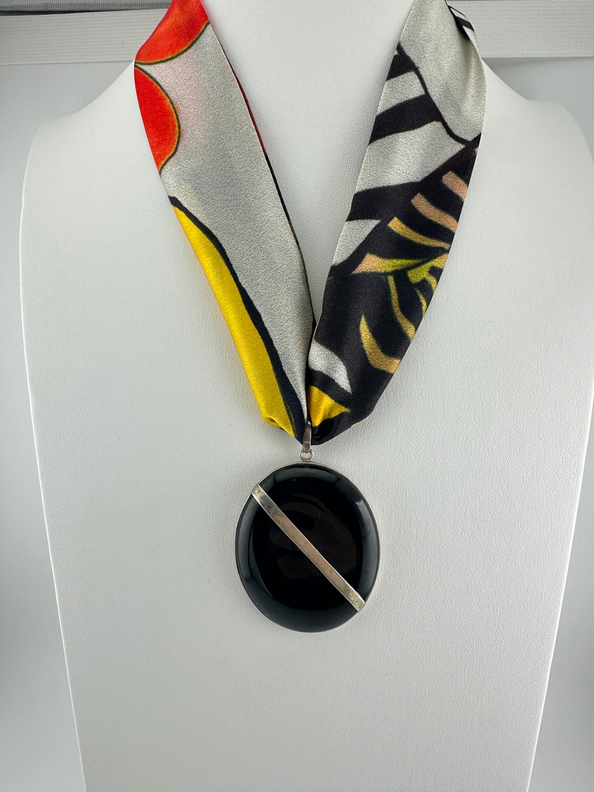 Master the art of making a statement with our black & silver Jade pendant. This ultimate head turner will elevate any outfit, especially when paired with our luxurious silk pieces. Show off your impeccable taste and be the center of attention at any event.