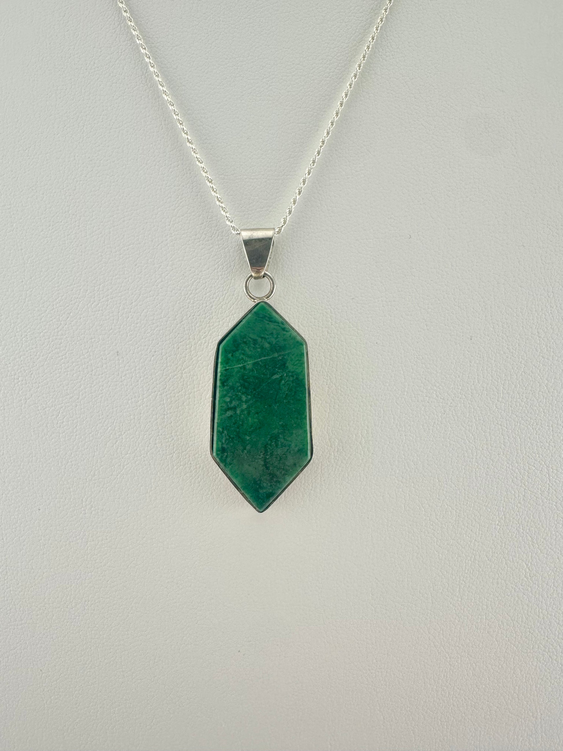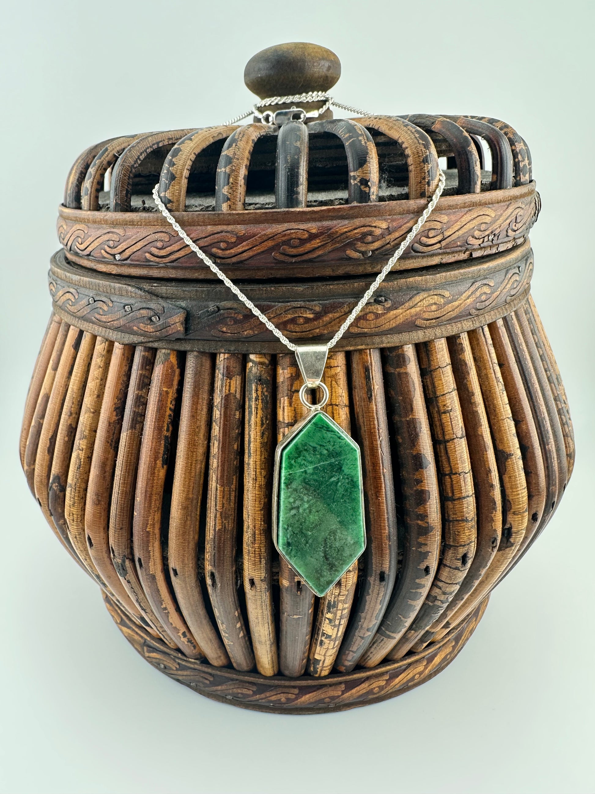 Introducing the our one-of-a-kind imperial Jade elongated hexagon. Admired by the Mayans for its symbol of prosperity and harmony, this imperial green Jade is more than just a stone - it's a testament to history and a declaration of timeless style. Enhance any look with a touch of ancient sophistication and good fortune.