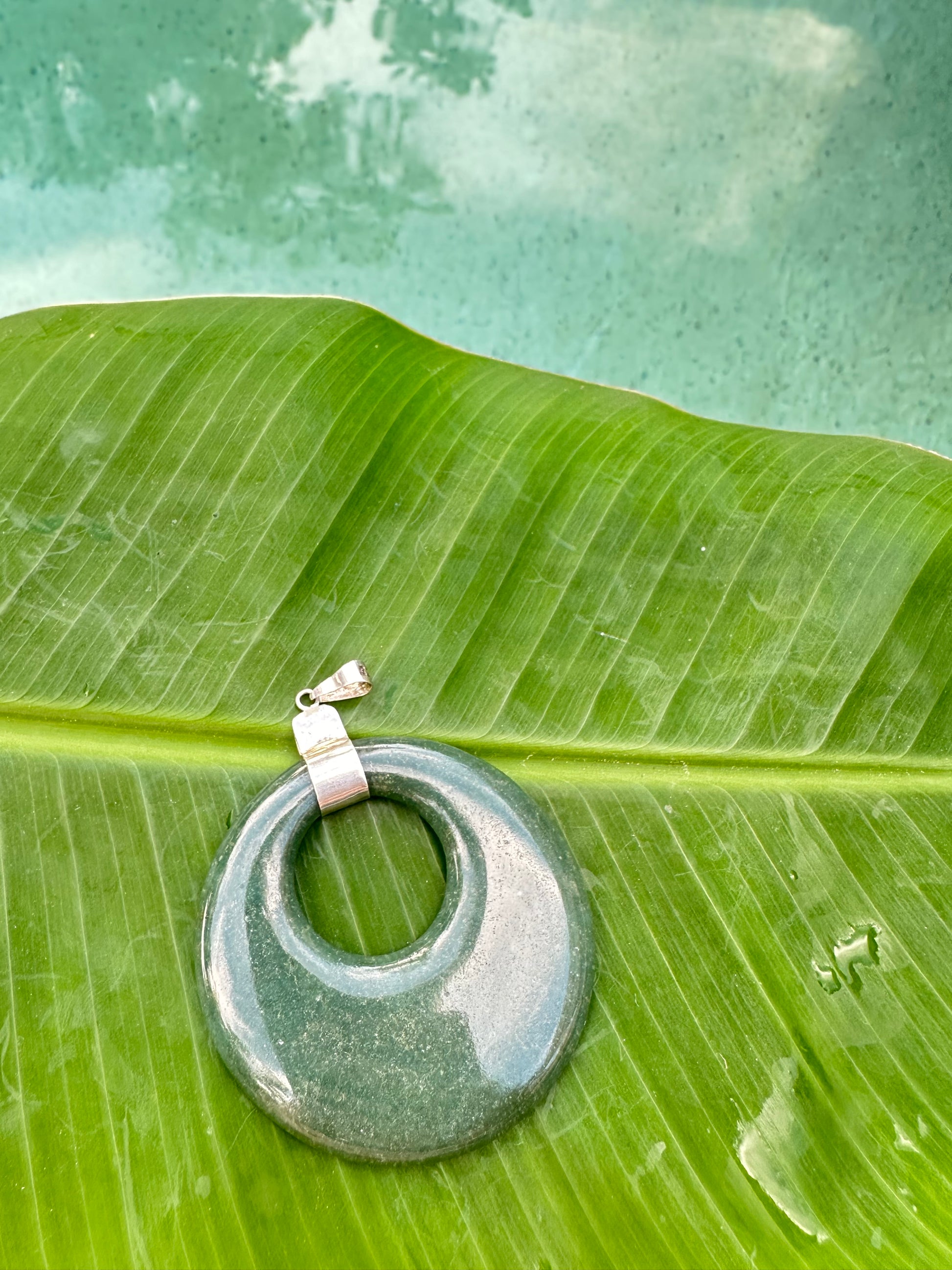 Jaguar green Jade large donut pendant