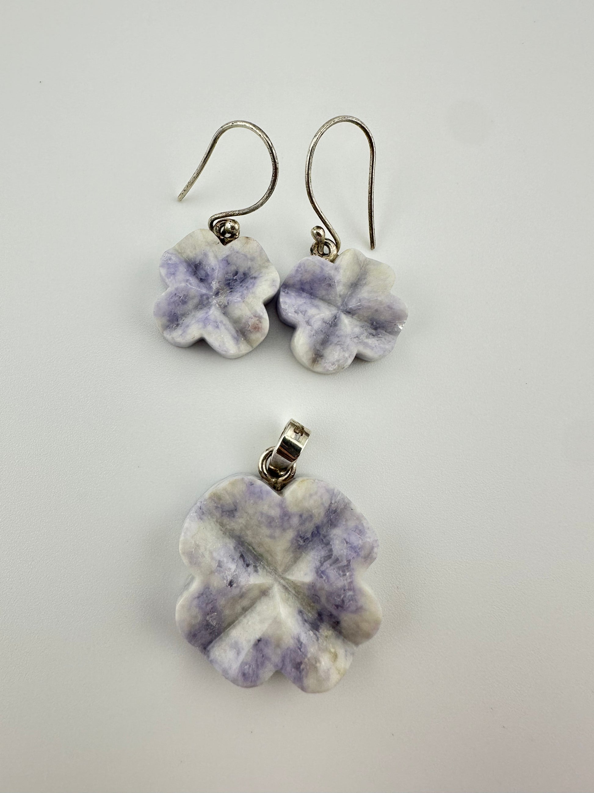 Dress up your evening out with our Jade Lavender Earrings and Pendant Set. Unique and eye-catching, this set adds a touch of playful elegance to any outfit.